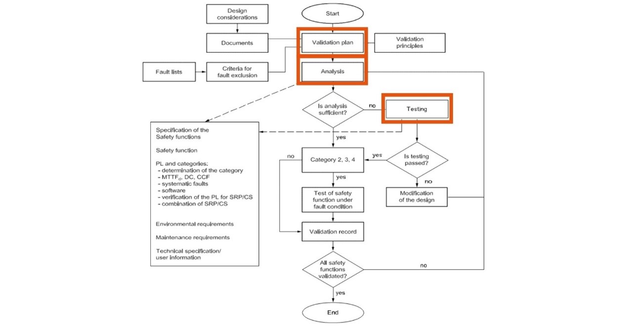 La validazione secondo ISO 13849-2 è un procedimento iterativo, il cui risultato è la validazione del prodotto.